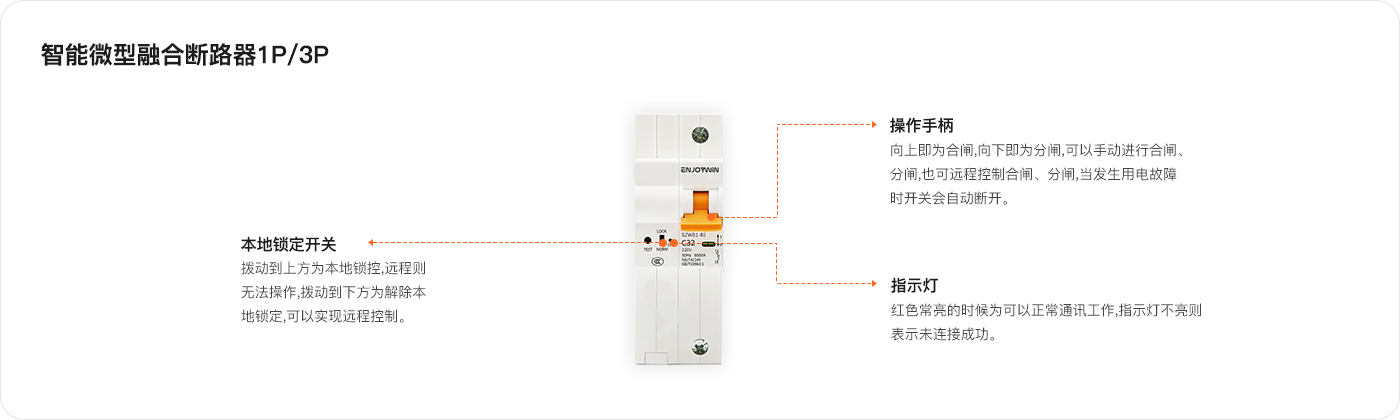 (3)独有的智能断路云控电技术∶产品内置可靠性更强的断路器控电装置和智能性更强的数字化控制芯片,真正意义上实现智能断路控电功能,不仅可精准、快速地实现用电云管理,而且可以实现在数字芯片关闭状态下,智能微型融合断路器依旧可以保留短路保护、漏电保护等用电保护功能。(注∶1P、3P智能微型融合断路器不带漏保功能)