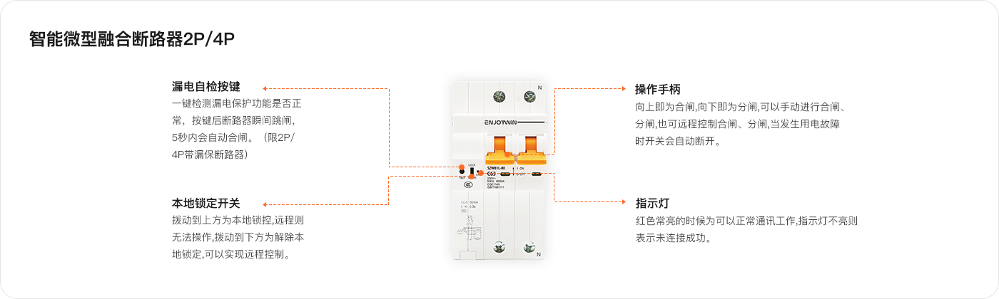 (13)漏电自检∶可通过管理软件对智能微型融合断路器设置每月自动漏电检测。(注∶1P、3P智能微型融合断路器不带漏电自检功能)
